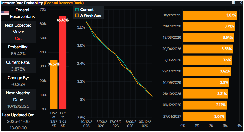 Dữ liệu từ Prime Market Terminal cho thấy xác suất cắt giảm lãi suất 25 điểm cơ bản hiện ở mức 62%, giảm từ 68% trước thông báo của ADP.