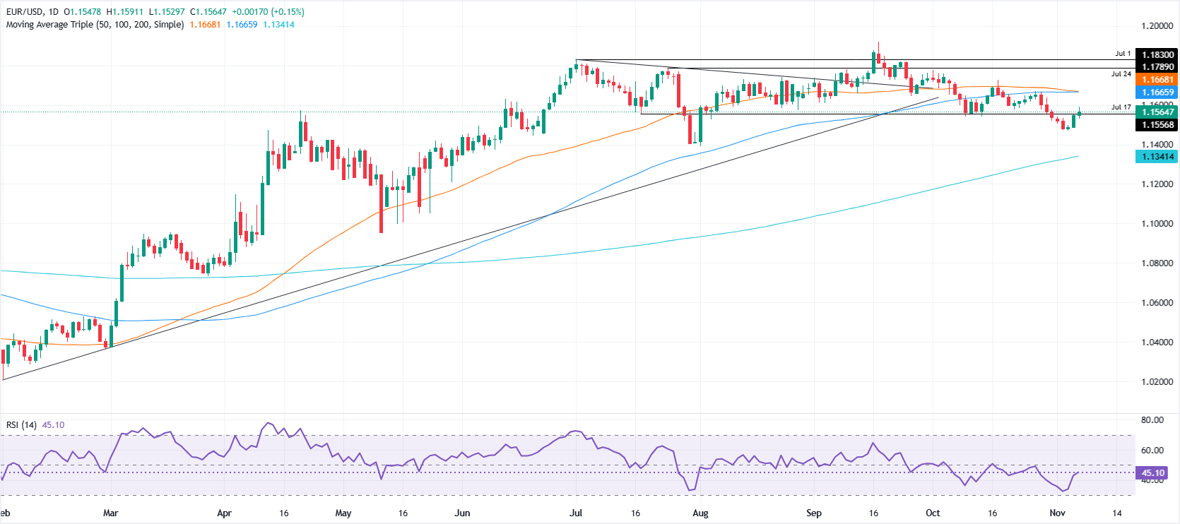 EUR/USD đã cắt giảm một phần tổn thất trước đó và tăng 0,16% vào cuối phiên giao dịch Bắc Mỹ vào thứ Sáu, trong bối cảnh lịch kinh tế khan hiếm ở cả hai bên Đại Tây Dương. Việc chính phủ Mỹ kéo dài tình trạng đóng cửa sang ngày thứ 38 và lịch kinh tế nhẹ ở châu Âu giữ cho cặp tiền này giao dịch trong các mức quen thuộc quanh 1,1560.