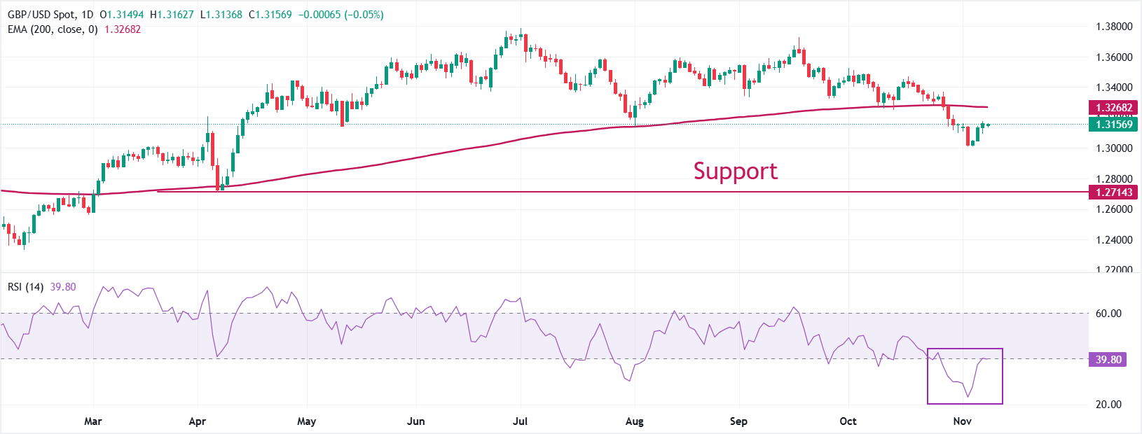 Đồng bảng Anh ổn định quanh mức 1,3150 so với đồng đô la Mỹ vào thứ Hai, giữ trên mức thấp hơn sáu tháng quanh mức 1,3000 được ghi nhận vào thứ Ba. Xu hướng tổng thể của cặp tiền này vẫn giảm khi nó giao dịch dưới Đường trung bình động hàm mũ (EMA) 200 ngày, hiện ở mức khoảng 1,3268.