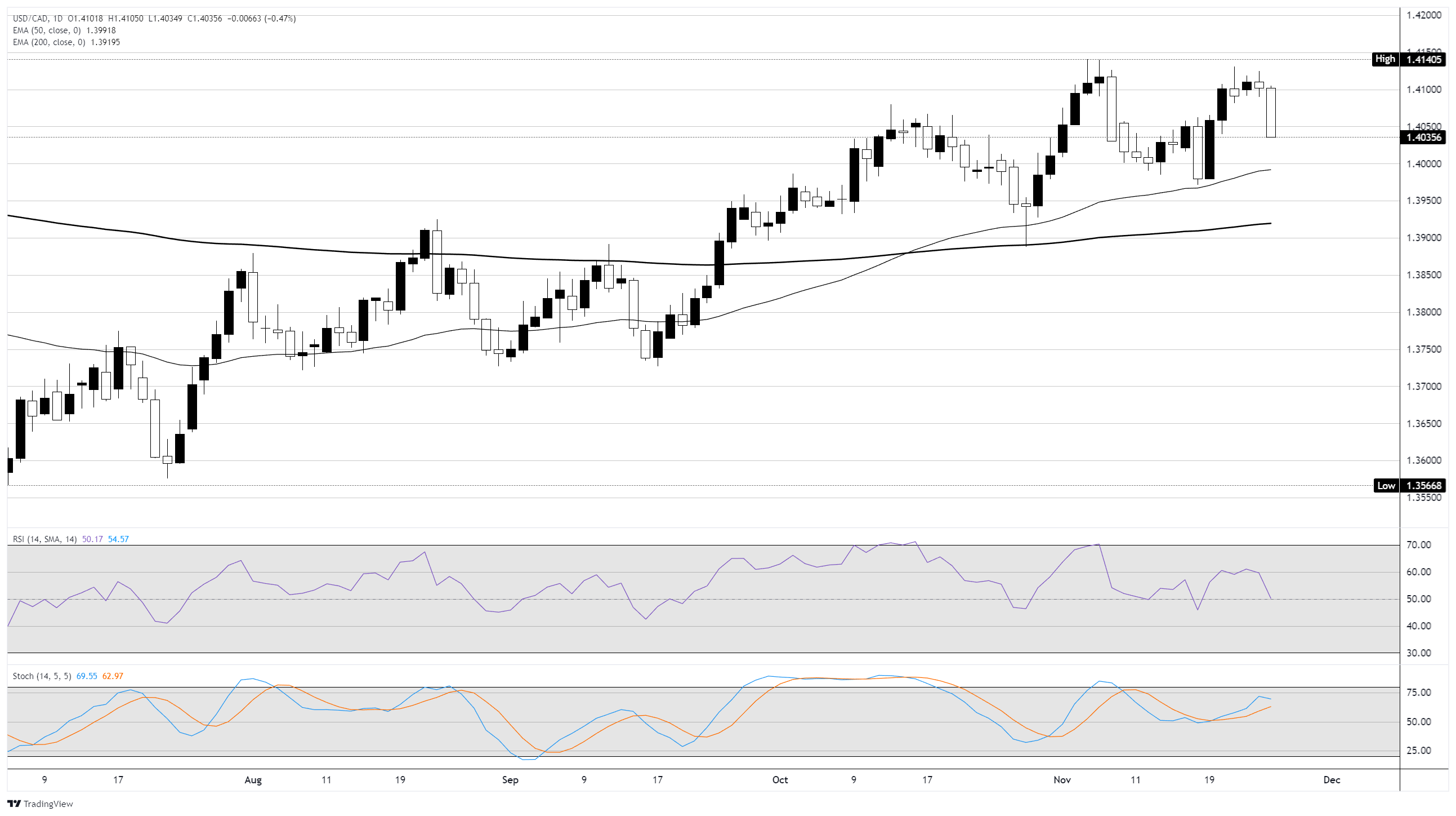 Dữ liệu tăng trưởng Tổng sản phẩm quốc nội (GDP) của Canada sẽ được công bố vào cuối tuần này vào thứ Sáu. Các nhà giao dịch CAD sẽ mong đợi một sự phục hồi trong các số liệu GDP hàng quý khi nền kinh tế Canada đang vật lộn với những hậu quả kéo dài từ chiến lược chiến tranh thương mại không công bằng của chính quyền Trump, tự bắn vào chân mình bằng các mức thuế tùy tiện. Tuy nhiên, kỳ nghỉ Lễ Tạ ơn của Mỹ sắp tới sẽ khiến khối lượng giao dịch bị hạn chế khi tuần kết thúc.