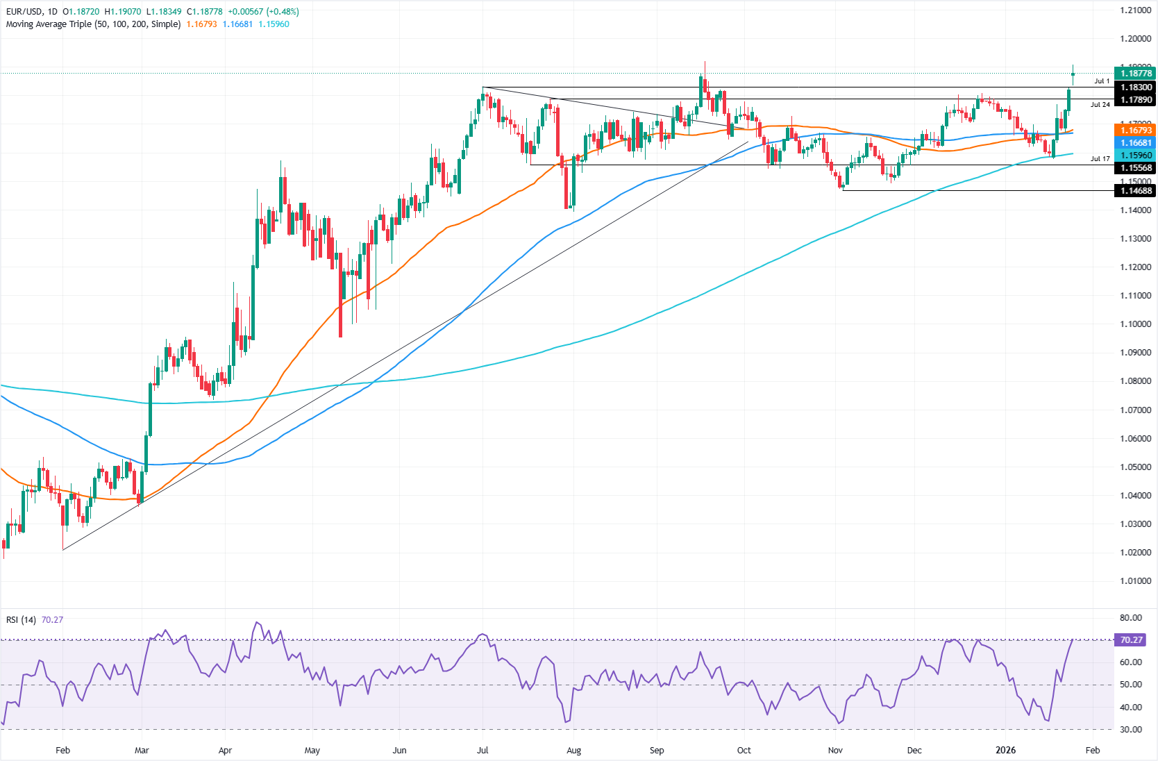 Triển vọng kỹ thuật: EUR/USD phá vỡ 1,1800, nhắm đến 1,2000