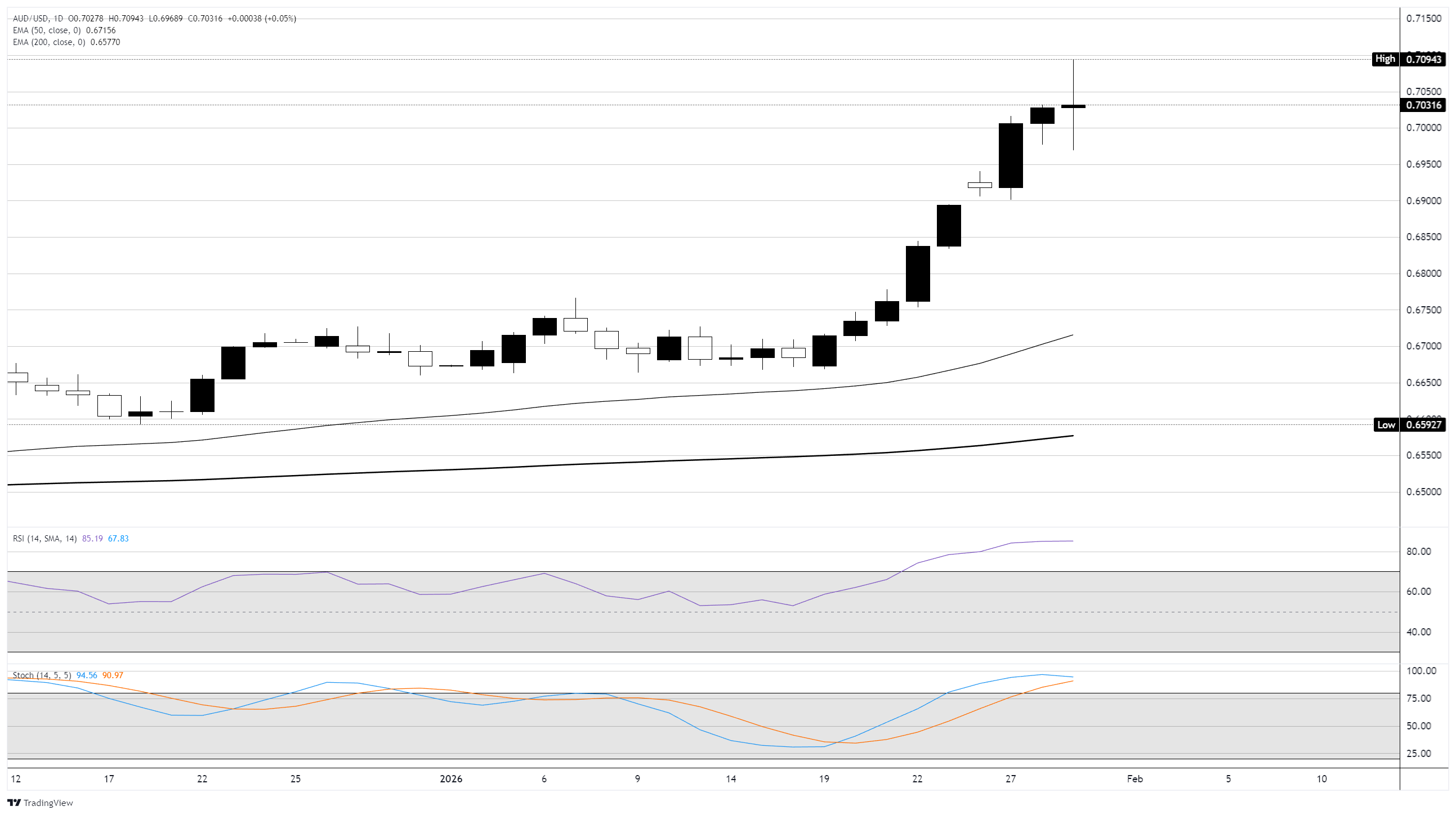 AUD/USD đã gặp phải một giai đoạn khó khăn vào thứ Năm khi sự biến động gia tăng trên toàn thị trường. Đồng đô la Úc (AUD) đã đạt mức cao nhất trong ba năm so với đồng đô la Mỹ (USD), trước khi giảm trở lại vào mức thấp trong ngày khi tâm lý thị trường chung xấu đi.