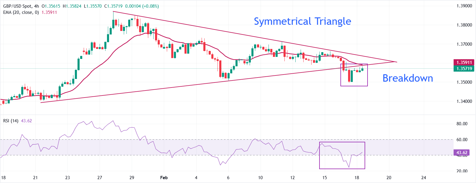 Cặp GBP/USD giao dịch phẳng ở mức khoảng 1,3570 trong phiên giao dịch châu Âu vào thứ Tư. Cặp này giữ nguyên khi đồng bảng Anh (GBP) tăng giá sau khi công bố dữ liệu Chỉ số giá tiêu dùng (CPI) của Vương quốc Anh cho tháng 1.