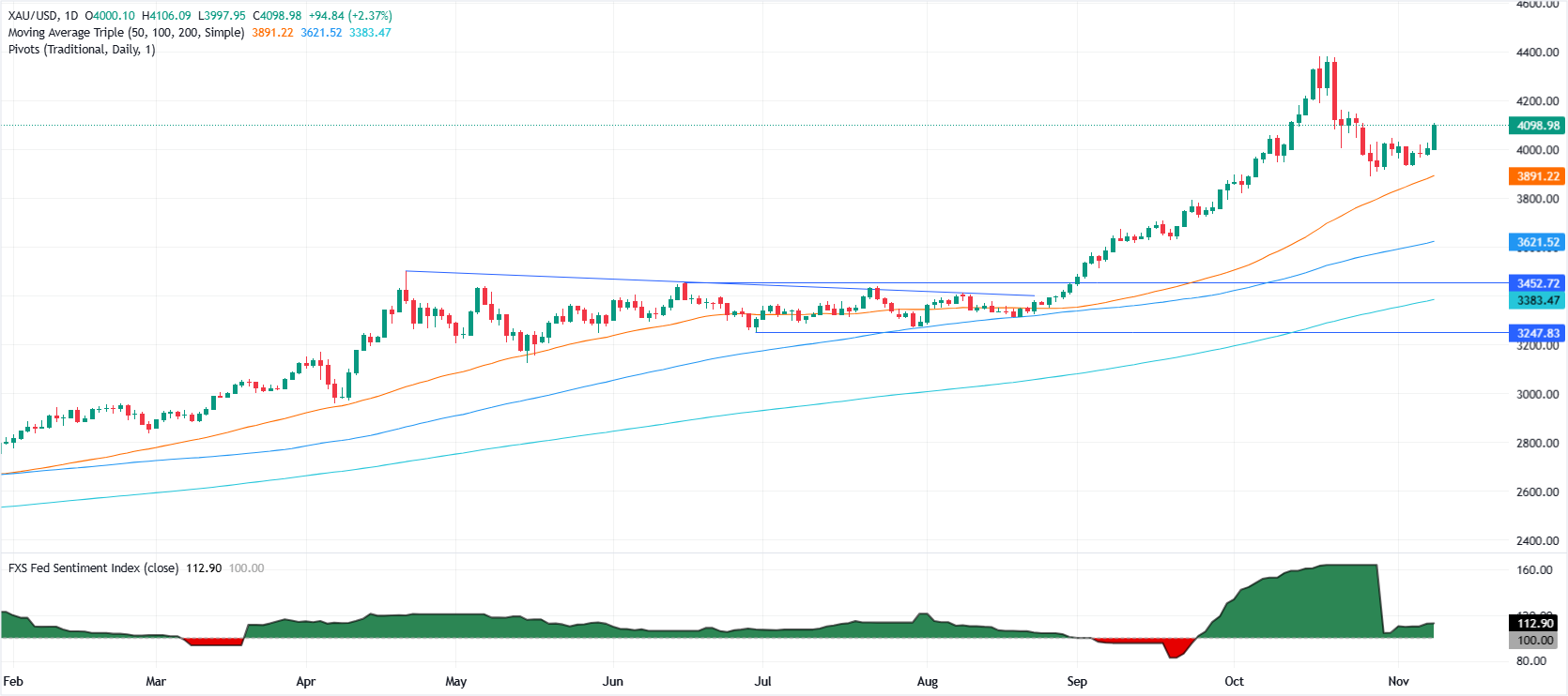 Mức kháng cự chính nằm ở 4.100$. Việc vượt qua mức này sẽ làm lộ ra mức cao ngày 22 tháng 10 tại 4.161$, trước mức 4.200$. Ngược lại, nếu giảm xuống dưới 4.000$ sẽ làm lộ ra mức 3.950$, tiếp theo là mức thấp ngày 28 tháng 10 là 3.886$.