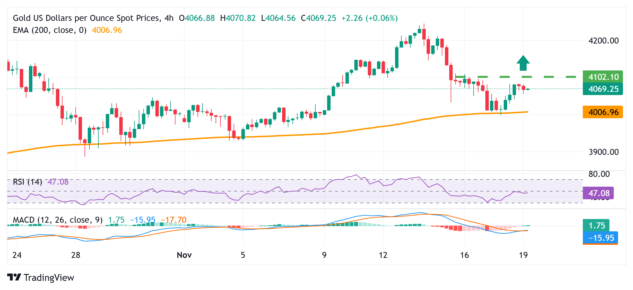 Hàng hóa vào thứ Ba đã tìm thấy sự hỗ trợ tốt và bật lên từ Đường trung bình động hàm mũ (EMA) 200 kỳ trên biểu đồ 4 giờ. Tuy nhiên, các bộ dao động hỗn hợp trên biểu đồ nói trên cần thận trọng trước khi định vị cho một động thái tăng giá tiếp theo. Trong khi đó, mức 4.100$ có khả năng đóng vai trò như một rào cản ngay lập tức, nếu được phá vỡ, có thể kích hoạt một đợt phục hồi ngắn hạn và nâng giá vàng lên mức 4.152-4.155$ trên đường tới mốc 4.200$.