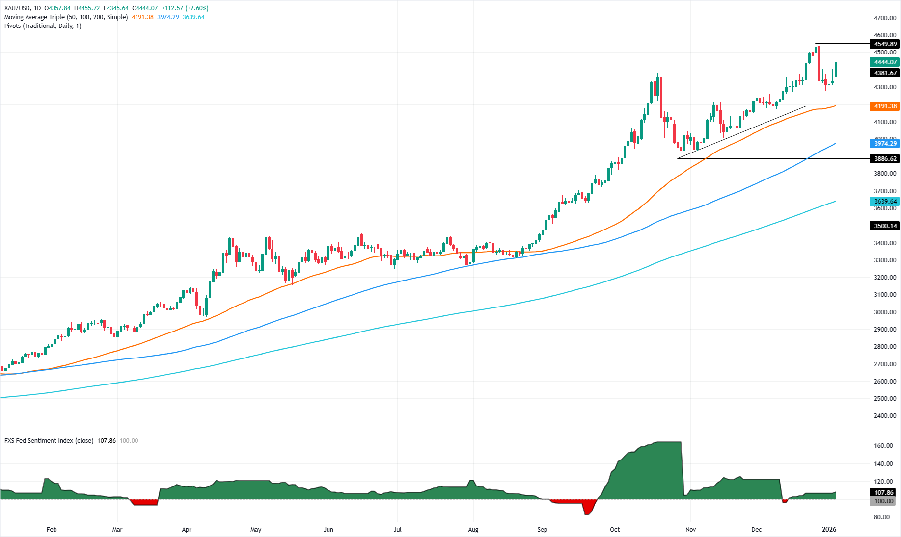 Vàng (XAU/USD) tăng mạnh vào thứ Hai, tăng hơn 2,60% khi các nhà đầu tư đánh giá rủi ro từ các cuộc tấn công của Mỹ vào Venezuela tuần trước và những tác động địa chính trị của nó trên toàn cầu. Tại thời điểm viết bài, XAU/USD giao dịch ở mức 4.442$ sau khi bật lên từ mức thấp trong ngày là 4.345$.