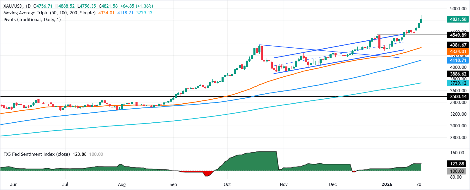 Nếu XAU/USD kết thúc ngày trên 4.800$, điều này có thể mở ra cơ hội thách thức 4.900$. Việc vượt qua mức này sẽ mở ra cơ hội kiểm tra cột mốc 5.000$. Ngược lại, nếu vàng giảm xuống dưới 4.800$, hỗ trợ đầu tiên sẽ là mức cao ngày 20 tháng 1 ở mức 4.766$. Khi vượt qua, điểm dừng tiếp theo sẽ là 4.700$.