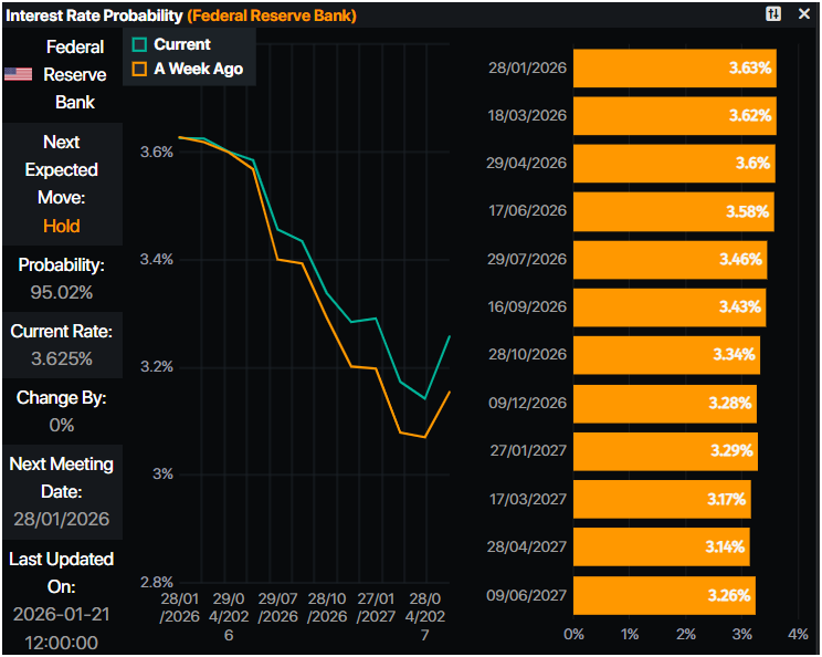 Vàng (XAU/USD) tăng trong phiên Bắc Mỹ vào thứ Tư, tăng 0,25% sau khi rút lui từ mức cao kỷ lục mới là 4.888$ vào đầu ngày sau khi Tổng thống Mỹ Donald Trump điều chỉnh giọng điệu của mình liên quan đến Greenland. Trump cho biết việc sử dụng lực lượng quân sự không phải là lựa chọn. Tại thời điểm viết bài, XAU/USD giao dịch ở mức 4.772$.