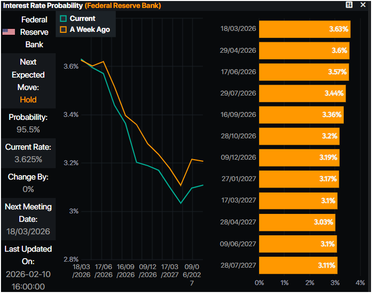 Sau khi các dữ liệu được công bố, các nhà giao dịch đã gia tăng kỳ vọng rằng Cục Dự trữ Liên bang (Fed) sẽ cắt giảm lãi suất vào năm 2026 từ 56,5 điểm cơ bản nới lỏng xuống 58,5, theo dữ liệu từ Prime Market Terminal.