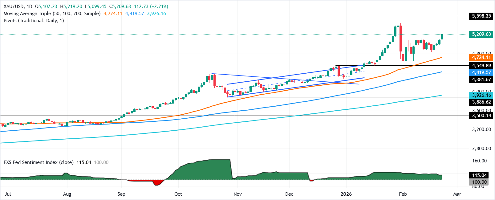 Một sự bứt phá qua 5.200$ sẽ mở ra mức 5.250$, tiếp theo là mức cao ngày 30 tháng 1 tại 5.451$. Nếu tiếp tục mạnh mẽ, điểm dừng tiếp theo là 5.500$, tiếp theo là mức cao kỷ lục gần 5.600$. Ngược lại, nếu XAU/USD giảm xuống dưới 5.100$, mức hỗ trợ đầu tiên sẽ là Đường trung bình động giản đơn (SMA) 20 ngày tại 5.025$, trước mức SMA 100 ngày tại 4.702$.