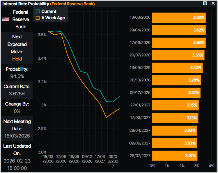 Tuần trước, dữ liệu kinh tế của Mỹ cho thấy nền kinh tế đã chậm lại, nhưng vẫn tăng trưởng với tốc độ 1,4% theo quý trong quý 4 năm 2025. Trong khi đó, chỉ số lạm phát ưa thích của Cục Dự trữ Liên bang, Chỉ số Giá Chi tiêu Cá nhân Cốt lõi (PCE), đã tăng 3% trong tháng 12, điều này có thể làm giảm khả năng Fed giảm lãi suất trong cuộc họp tháng tới.