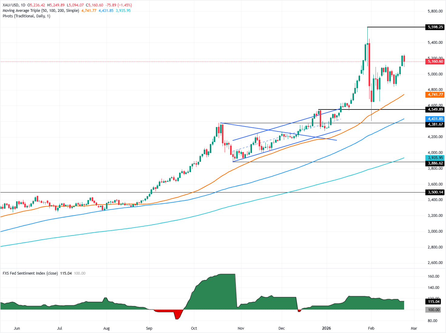 Nếu XAU/USD lấy lại 5.200$, mức kháng cự quan trọng tiếp theo sẽ là 5.249$ trước 5.300$. Nếu tiếp tục mạnh mẽ, mục tiêu sẽ là mức cao nhất vào ngày 30 tháng 1 ở mức 5.451$, tiếp theo là đỉnh kỷ lục gần 5.600$.