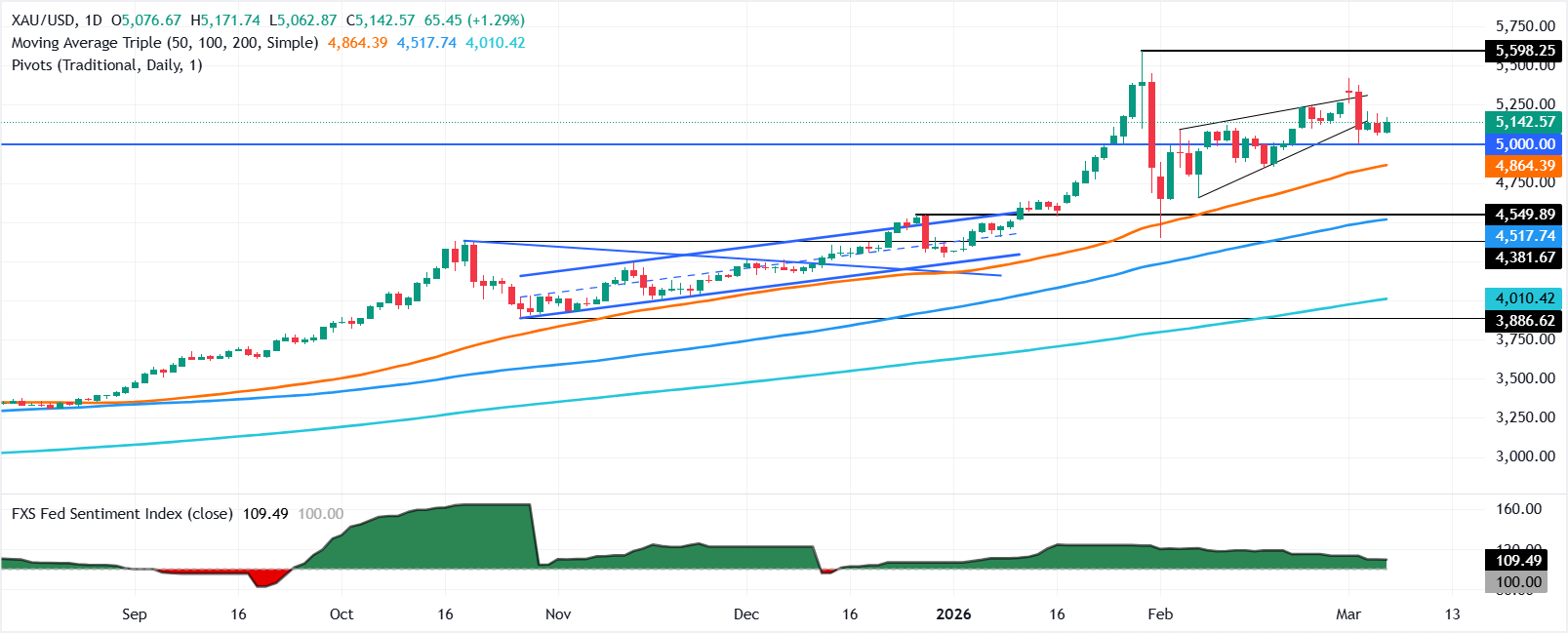 Triển vọng kỹ thuật XAU/USD: Vàng giao dịch trong khoảng 5.100-5.150$