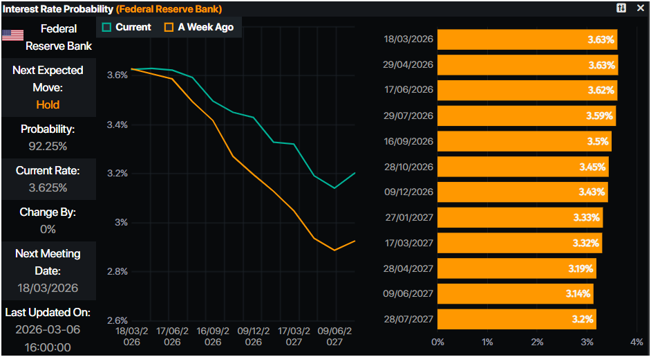 Trong khi đó, số liệu Bảng lương phi nông nghiệp của Mỹ cho tháng Hai rất tồi tệ, với nền kinh tế mất hơn 92K việc làm, thấp hơn dự báo tạo ra 59K việc làm. Tỷ lệ thất nghiệp tăng nhẹ lên 4,4%, nhưng vẫn dưới mức 4,5% mà Cục Dự trữ Liên bang dự đoán cho năm 2026.