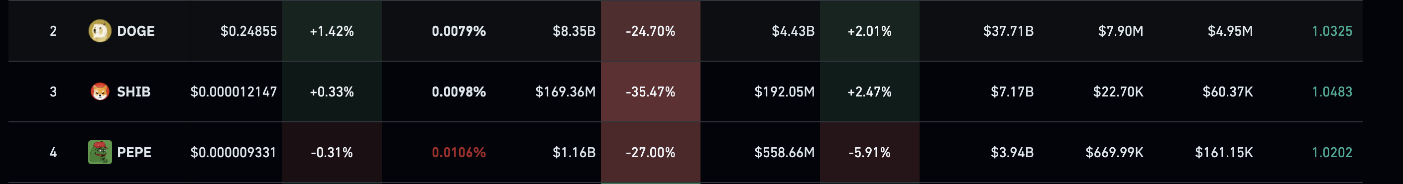 At the same time, PEPE Futures OI is down 5.91% to $558.66 million, suggesting that traders are closing long positions.