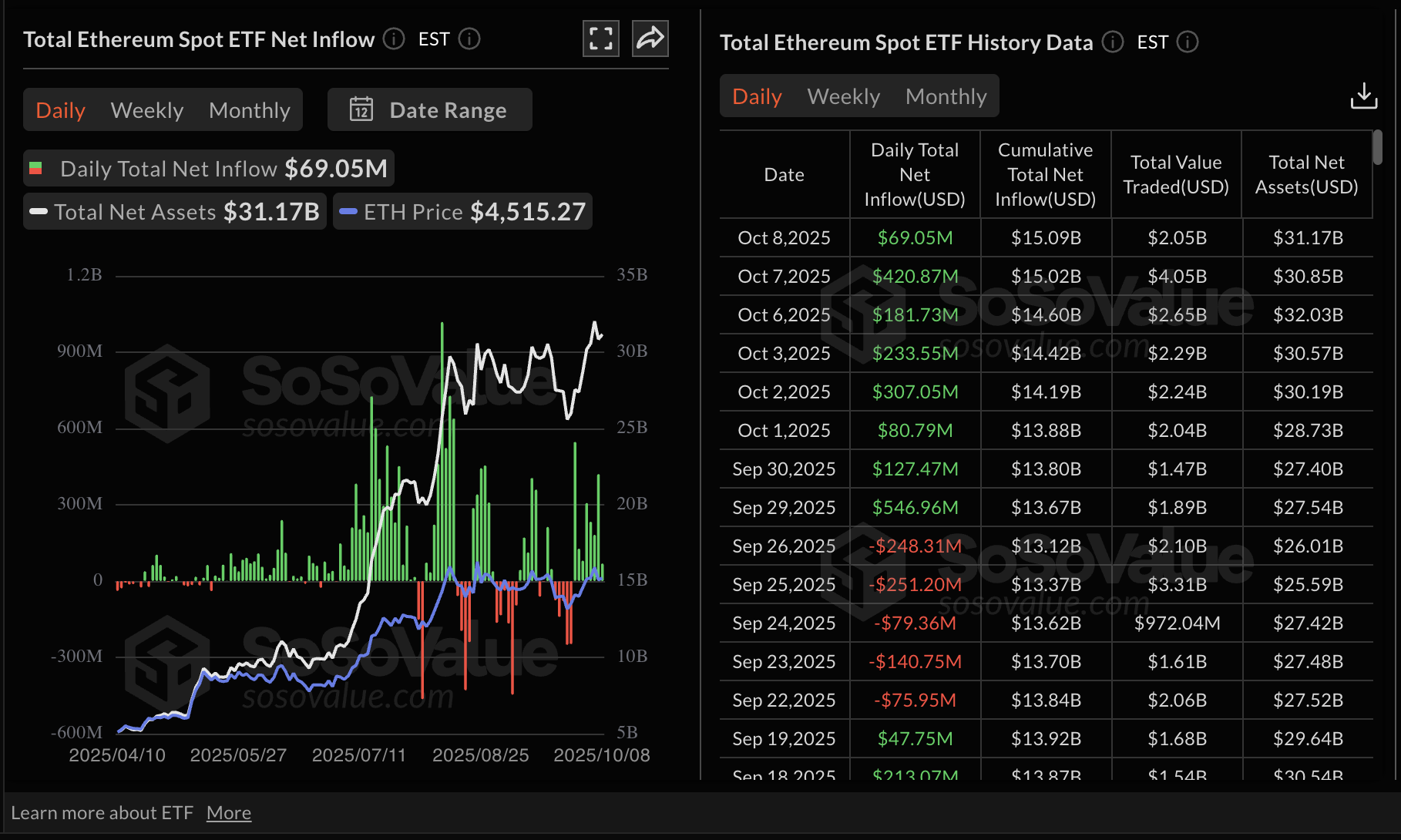 Ethereum ETF stats | Source: SoSoValue
