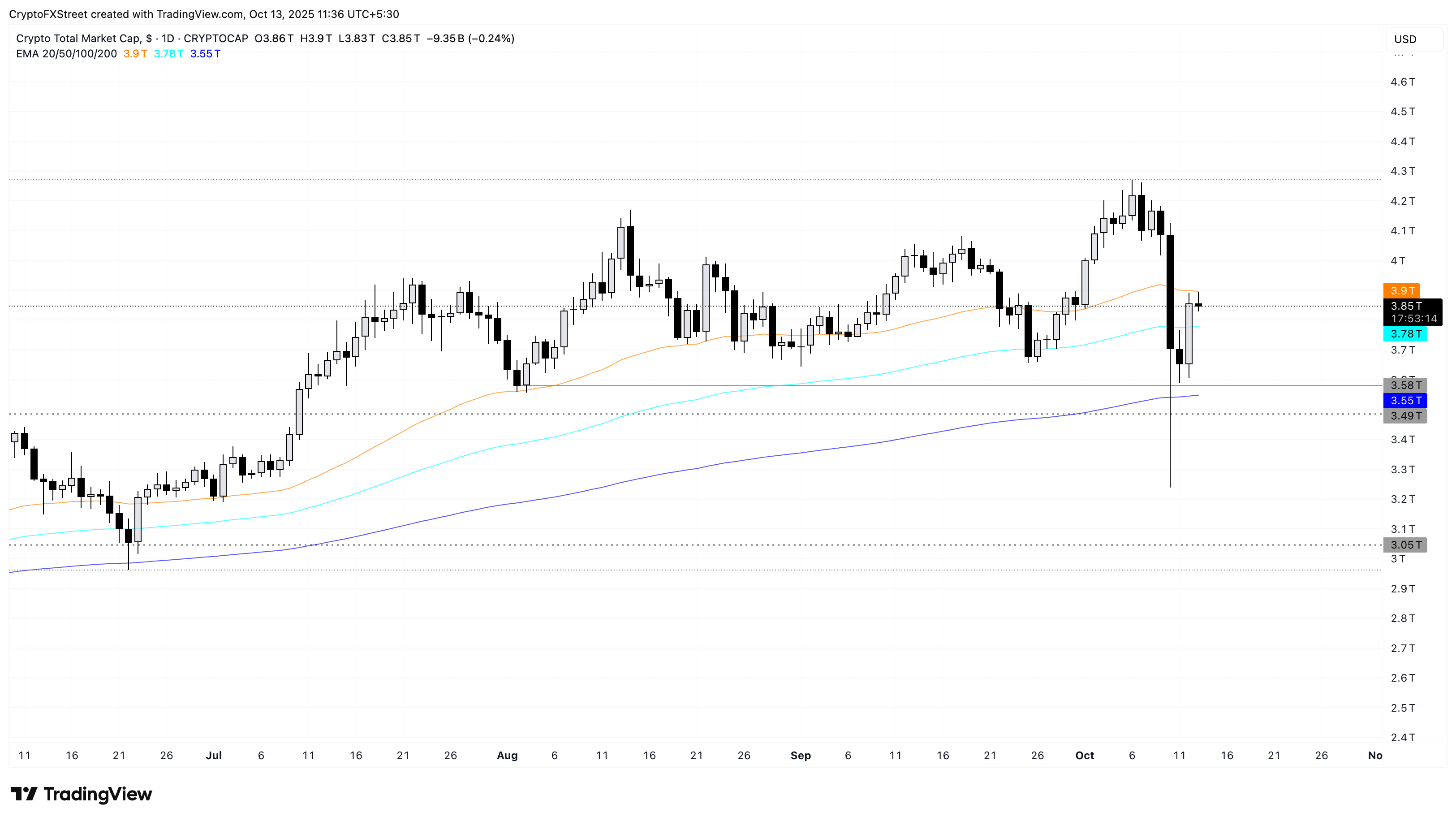 Total crypto market capitalization daily price chart.