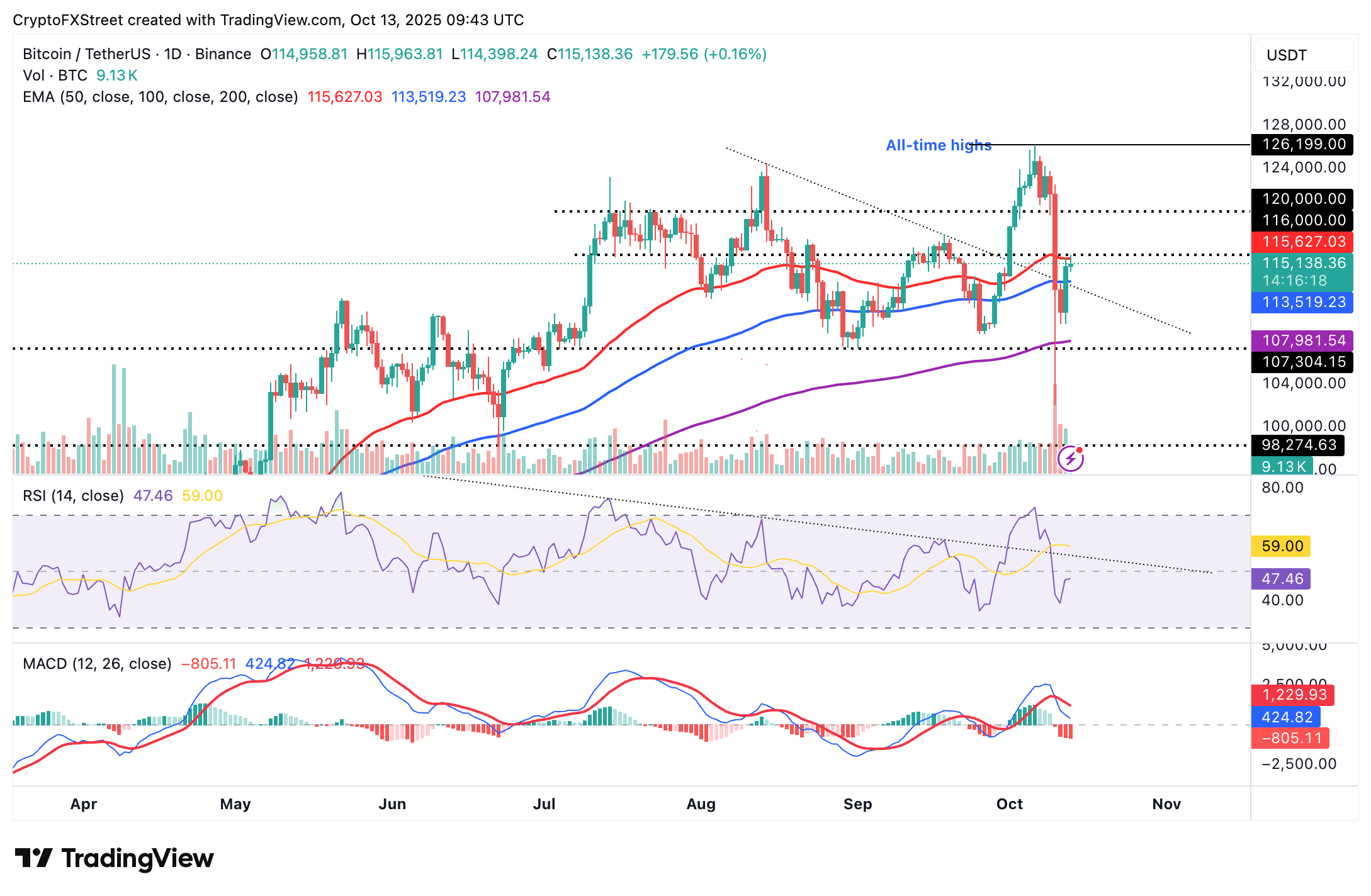 Still, the 50-day Exponential Moving Average (EMA) currently at $115,627 is a resistance that must be broken to pave the way for the swing high.
