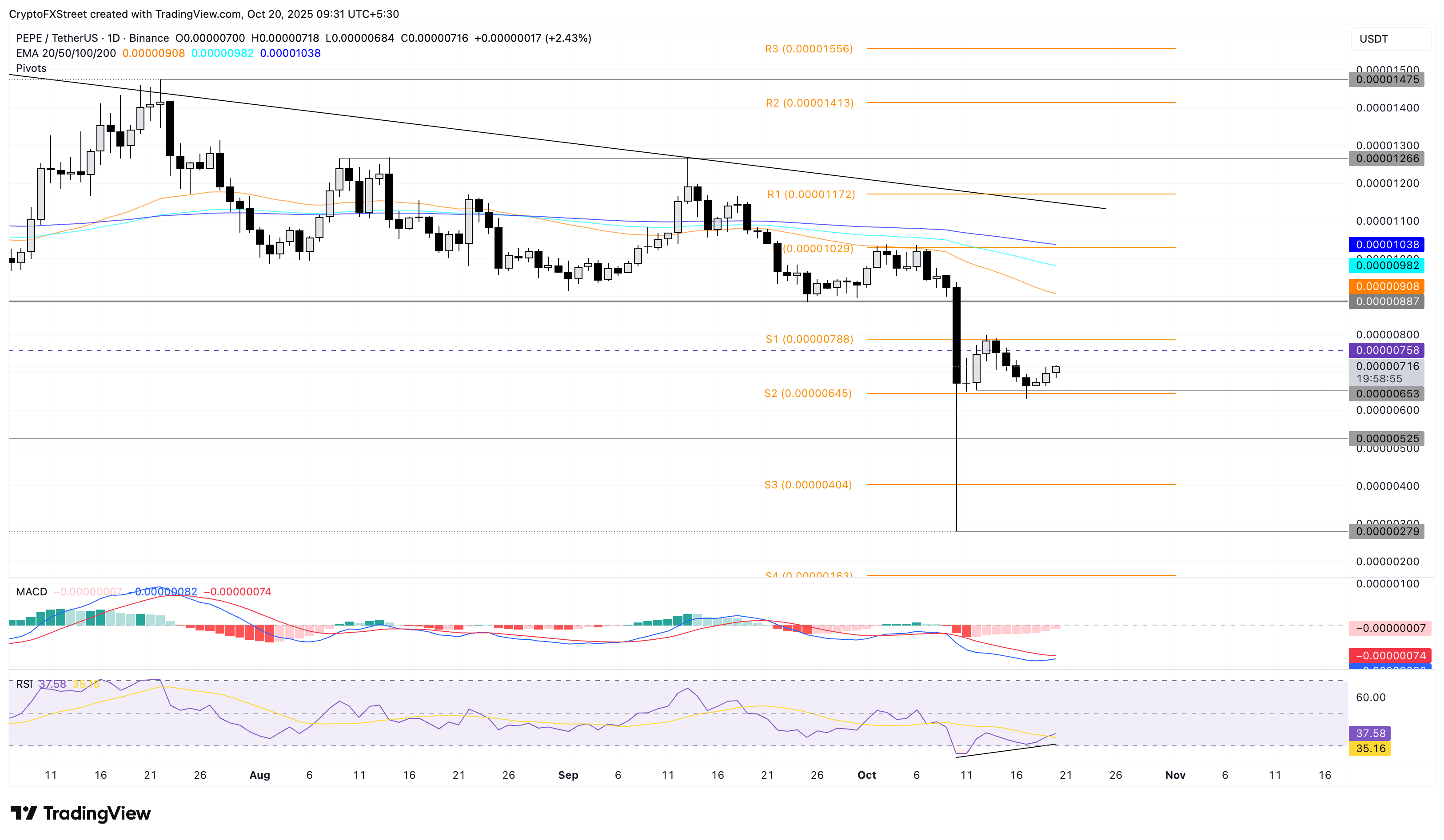 Meme coins such as Dogecoin (DOGE), Shiba Inu (SHIB), and Pepe (PEPE) bounce off the support floor formed earlier this month after the $19 billion broader market liquidation wave on October 10. Technical signals point to waning supply pressure, while a consistent bullish RSI divergence across DOGE, SHIB, and PEPE daily price charts suggests a bounce back that could ignite the long-delayed “Uptober” rally in meme coins.