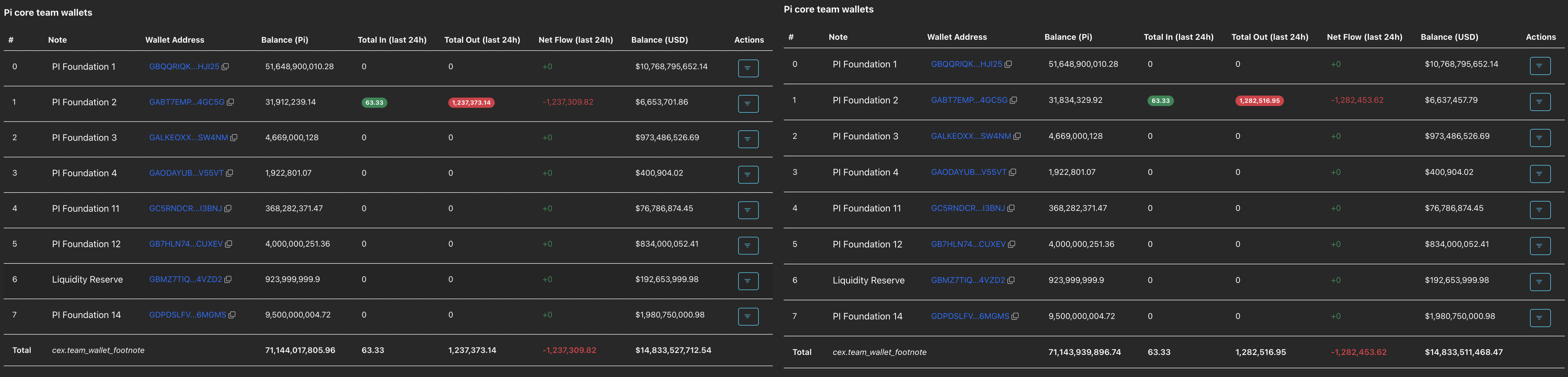 PI CEXs and Foundation wallets balances. PiScan.