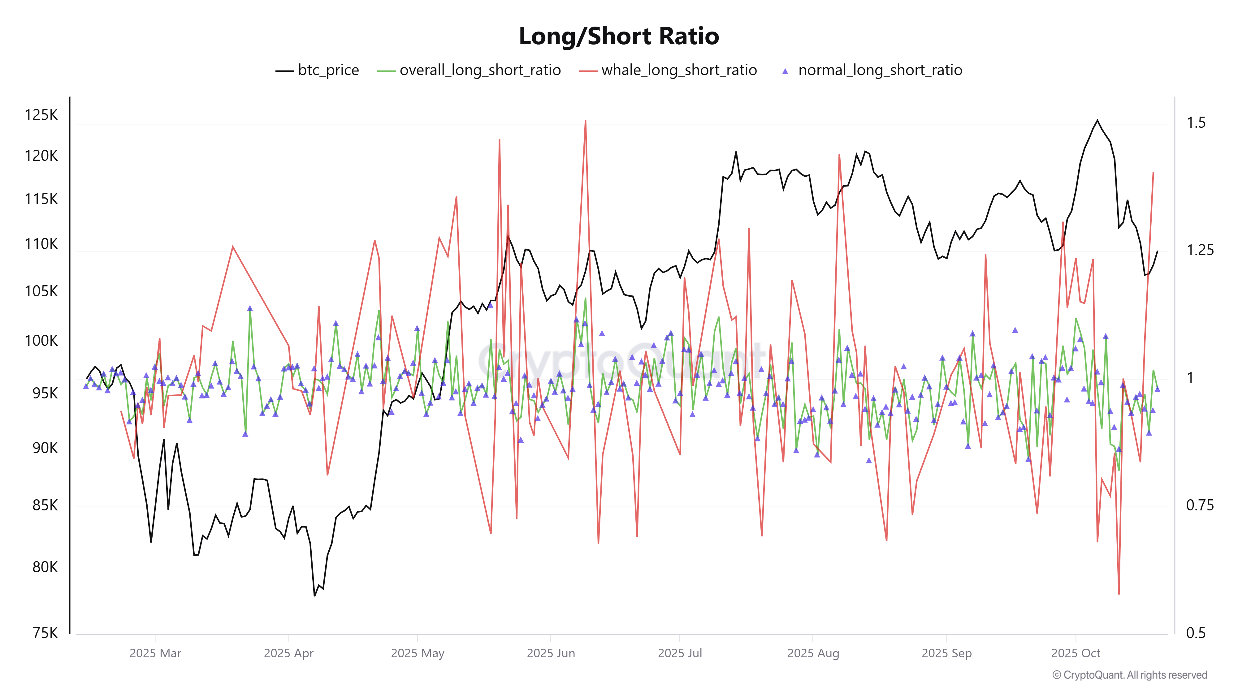 CryptoQuant’s Binance BTC data shows divergence between large-scale players, also called whales or ‘smart money’, and retail traders.