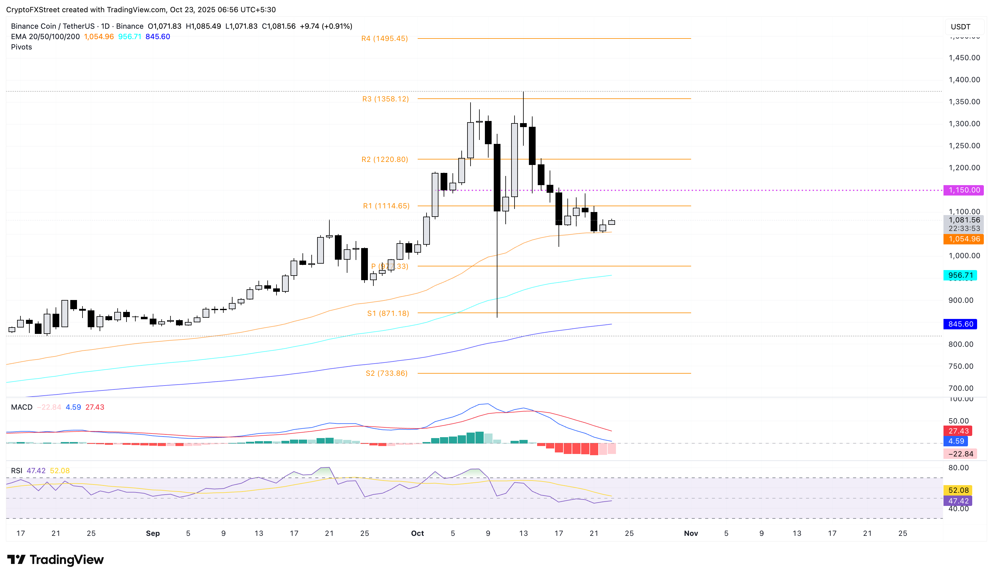 • BNB holds above $1,000 with a bounce back from the 50-day EMA while indicators remain divided.