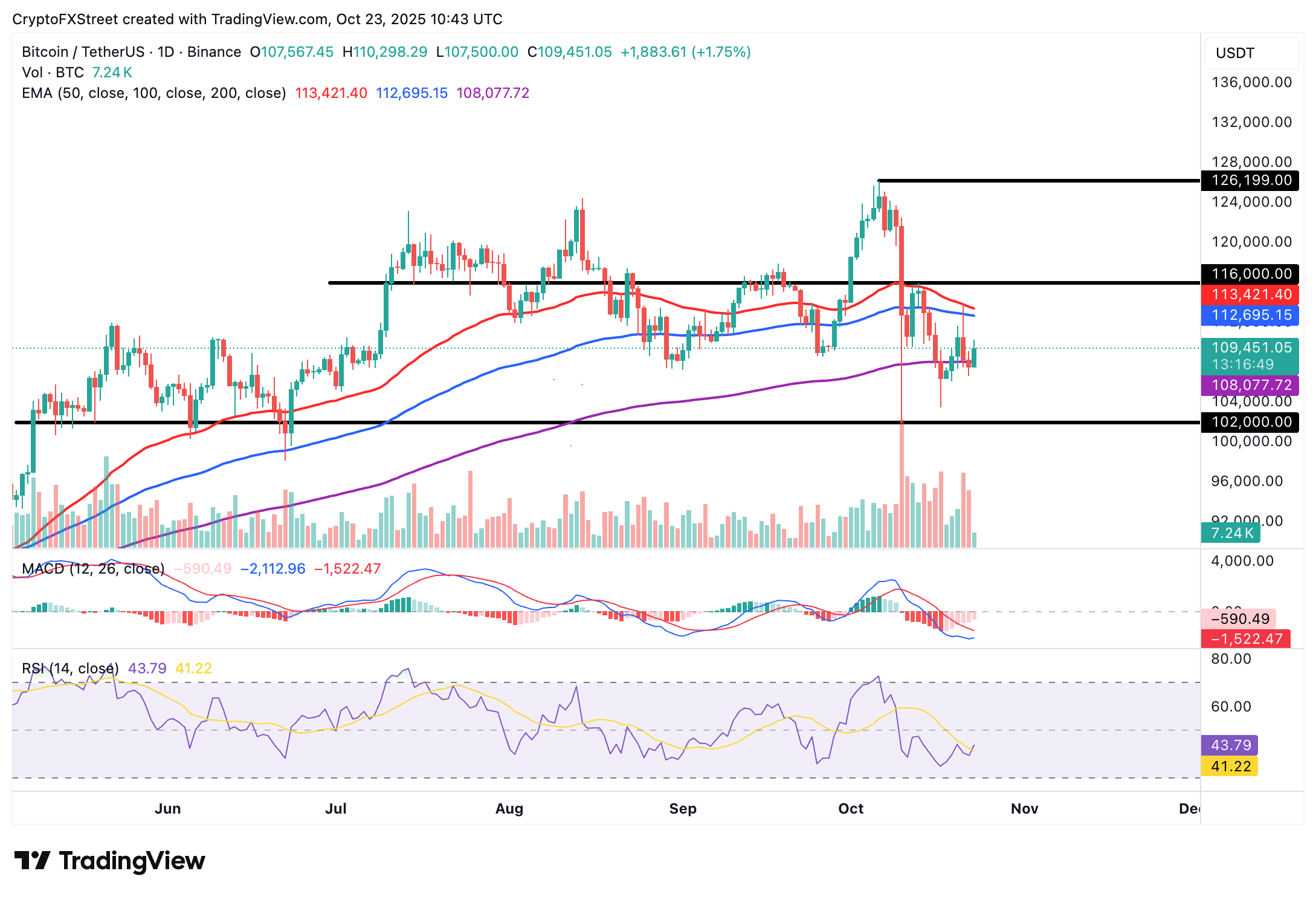 Bitcoin is trading above $109,000 at the time of writing on Thursday, following an intraday push to $110,298. The largest cryptocurrency by market capitalization also sits above the 200-day Exponential Moving Average (EMA) at $108,077, supporting a short-term bullish outlook on the daily chart.