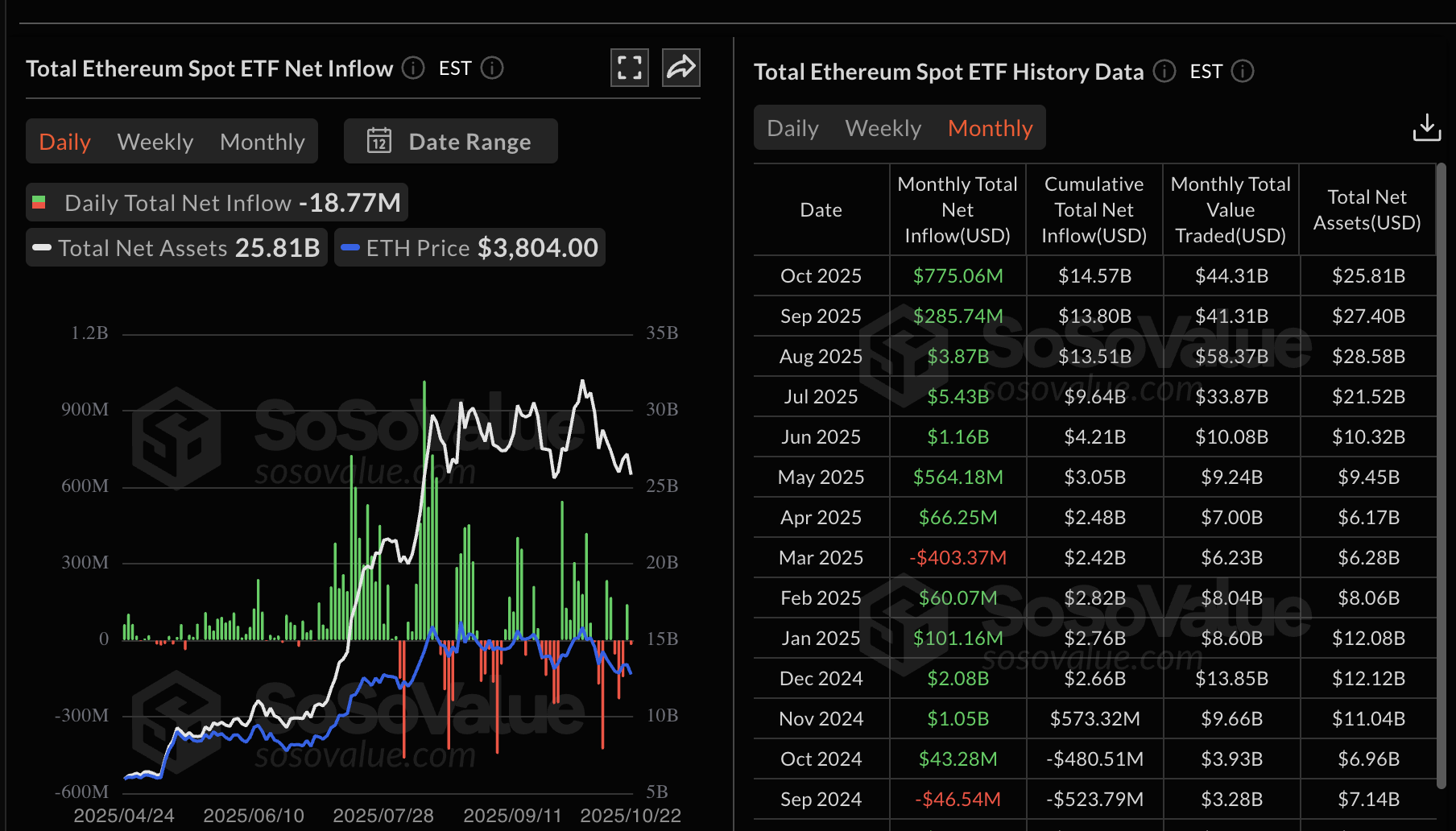 Meanwhile, institutional demand for Ethernet-related financial products, such as the spot Exchange Traded Funds (ETFs), significantly faded over the last two months. In September, ETF inflows totaled $286 million compared to $3.87 billion in August and $5.43 billion in July. So far in October, inflows stand at $775 million.