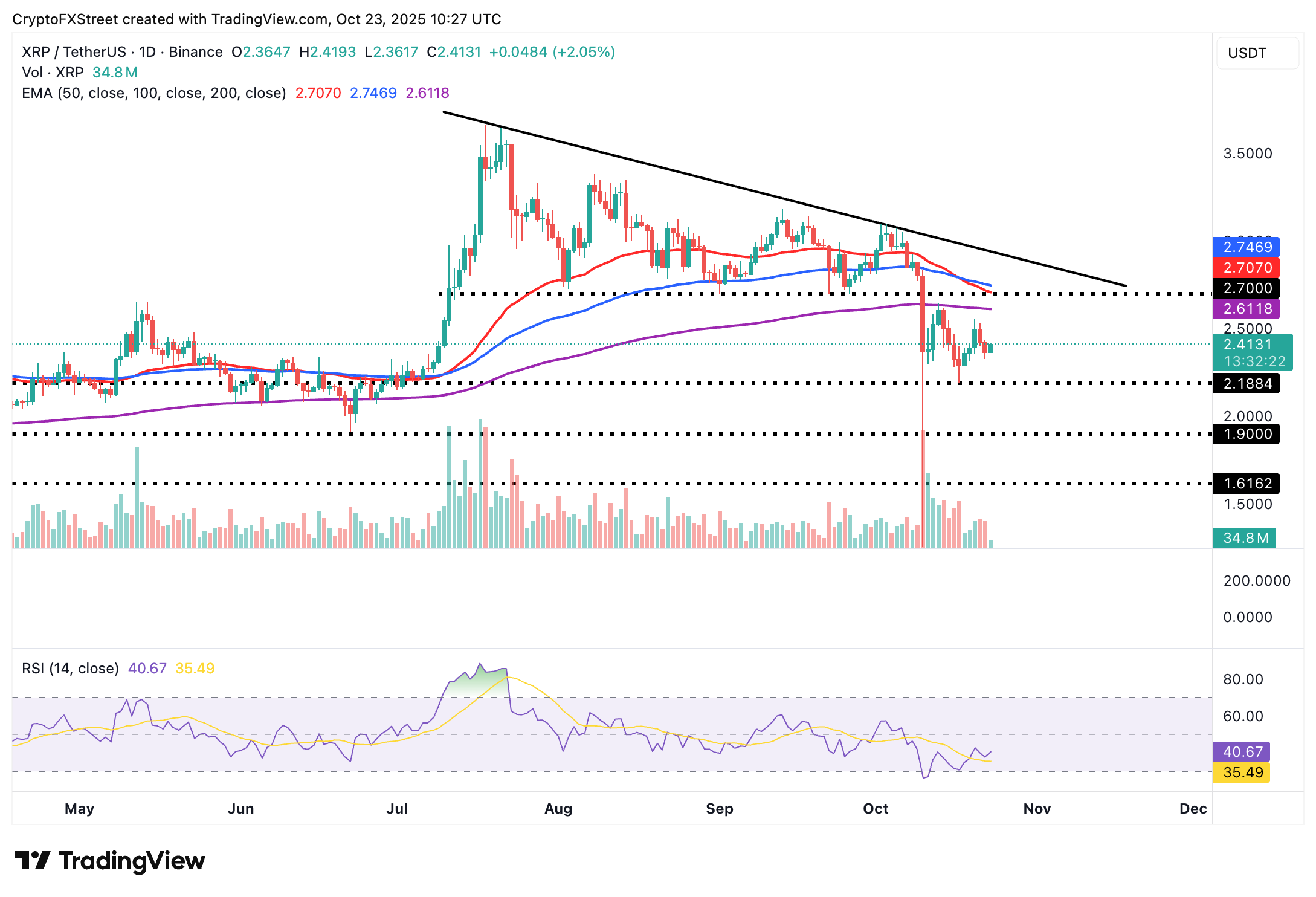 As for XRP, bulls are working to regain control and push for a sustained recovery above the 200-day EMA at $2.61. A recent attempt to breach this hurdle failed as volatility increased in the broader crypto market amid the lack of key price catalysts. The RSI, facing upward at 40, supports the bullish outlook on the daily chart.