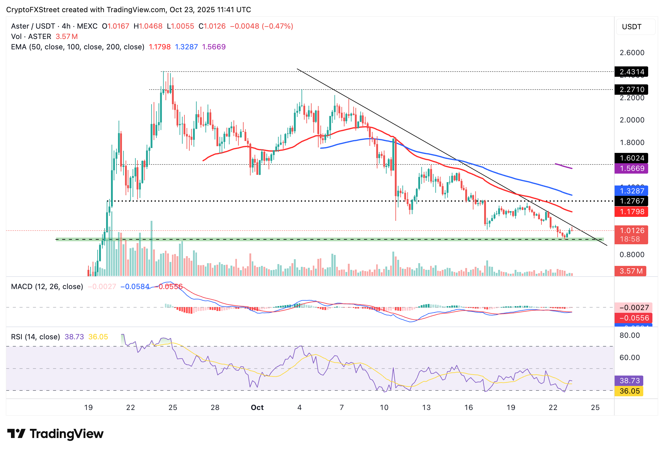 • Aster rebounds above $1.00, moving in tandem with the broader crypto market.