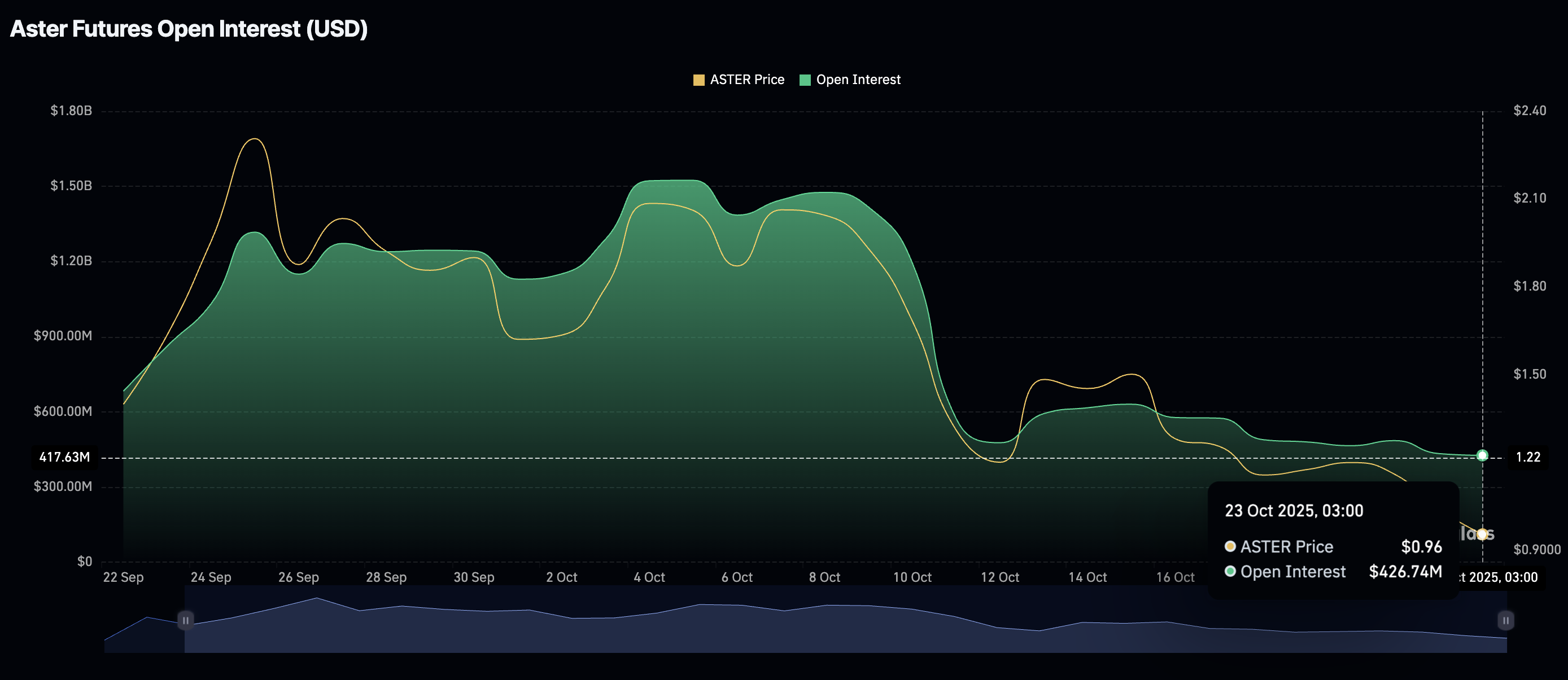 Despite Rocket Launch’s debut, interest in Aster remains significantly suppressed based on the futures Open Interest (OI), which averages $427 million at the time of writing from a record high of $1.52 billion in early October. Traders may want to see the OI, representing the notional value of outstanding futures contracts, steadily increase to ascertain Aster’s bullish potential.