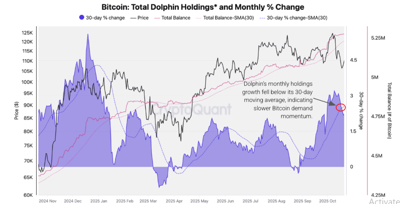 "For the bull trend to resume and push Bitcoin to new all-time highs, the monthly accumulation rate must accelerate again," wrote CryptoQuant analysts. "The next few weeks will be critical: a reacceleration in [Dolphin] accumulation could push Bitcoin to new highs, while continued slowdown risks deepening the correction."