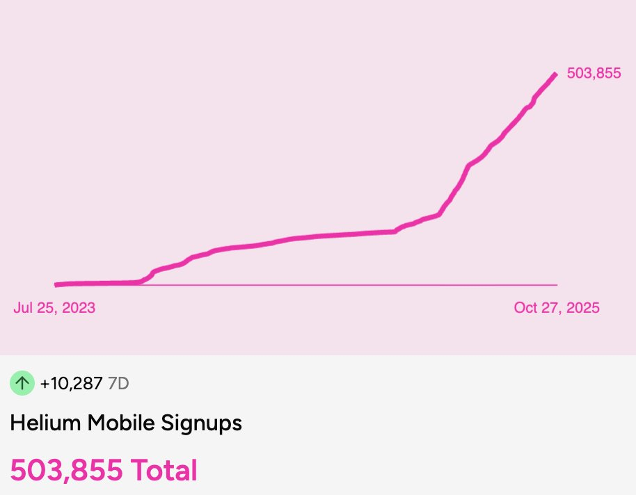 Corroborating the surge, Helium mobile signups have officially reached a milestone of 500,000, indicating a steady adoption of the DePIN.