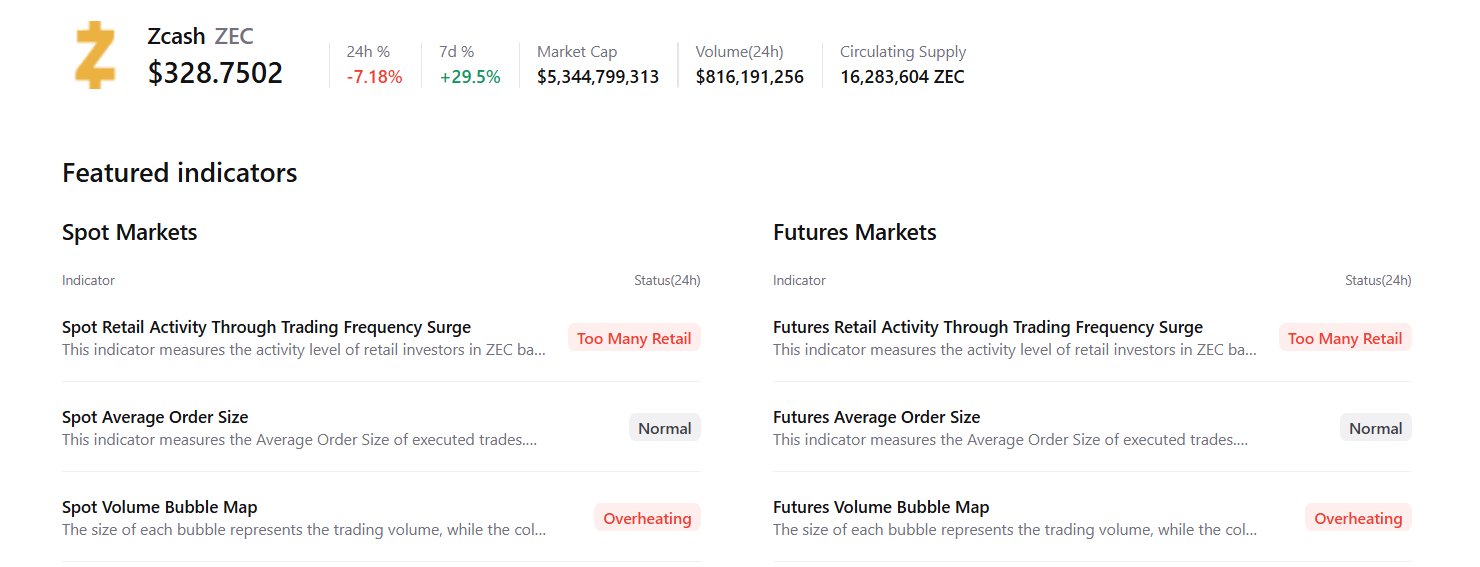 Zcash (ZEC) price trades in red below $330 at the time of writing on Tuesday, showing early signs of cooling after a sharp rally earlier in the week. The privacy-focused cryptocurrency, onchain data shows a rise in retail activity, a trend often linked to short-term market tops. Adding to this bearish outlook, the technical indicators are flashing bearish divergence, suggesting weakening momentum and the potential for a near-term correction.