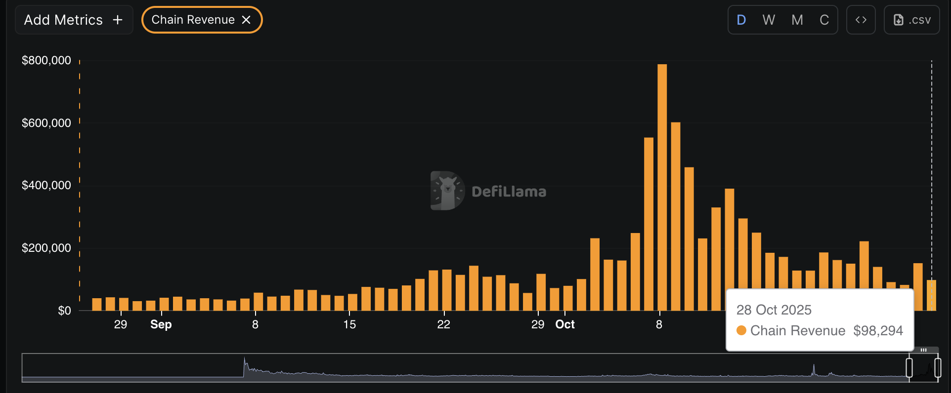 Additionally, the chain revenue plunged to $98,294 on Tuesday from $787,655 on October 8, corroborating the low demand or capital rotation possibility. If BNB Chain fails to regain user demand, its utility token could further decline in value.