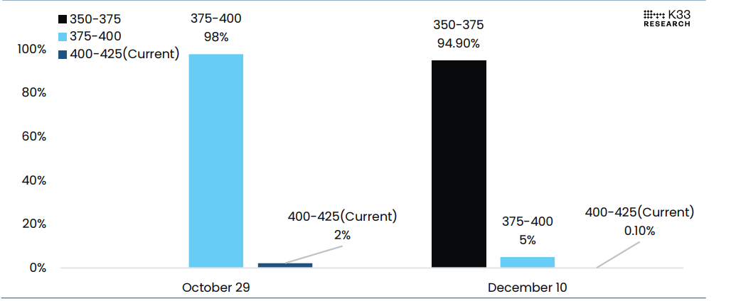For now, the market is pricing a 98% chance of a 25-bps cut on Wednesday and a 94.9% chance of another 25-bps cut following the December 10 FOMC meeting.