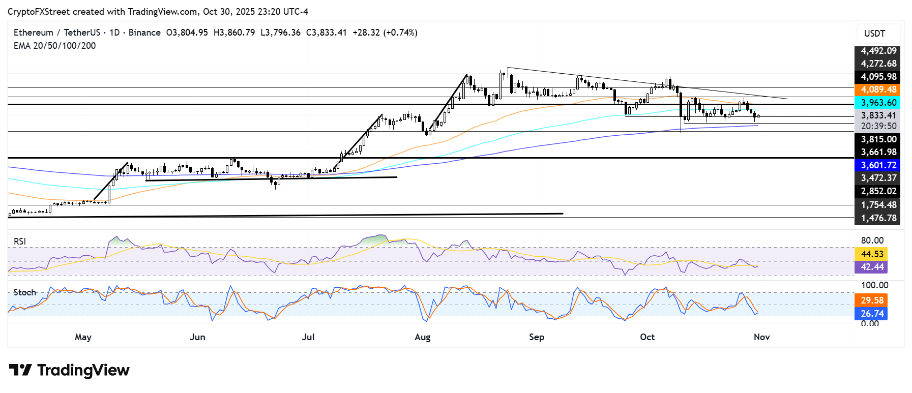 Ethereum Price Forecast: ETH tests key $3,815 support