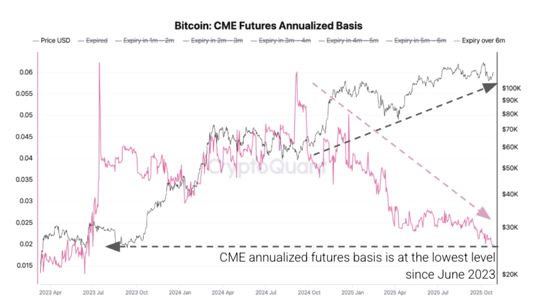 CryptoQuant’s on-chain metrics further highlight a bearish outlook for Bitcoin, as US investor demand in the Bitcoin futures market is also at low levels. This is evident in the downward trend of the CME’s Futures annualized basis, which has fallen to 1.98%, the lowest level in more than two years. This situation indicates that demand to hold Bitcoin futures with 6-month or longer expiries is lower than in recent months and has declined as Bitcoin spot prices rallied from $80,000 to $120,000.