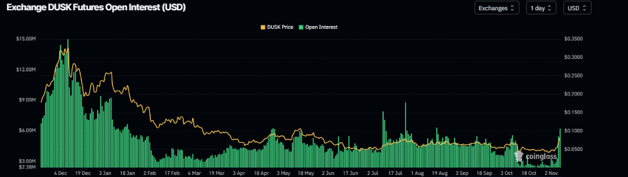 Still, when examining its derivatives data, the outlook for DUSK suggests a further rally ahead. CoinGlass’ data shows that DUSK futures OI at exchanges rose to $6.21 million on Friday from $2.77 million on Monday, the highest level since August 18. Rising OI represents new or additional money entering the market and new buying, which could fuel the current DUSK price rally.