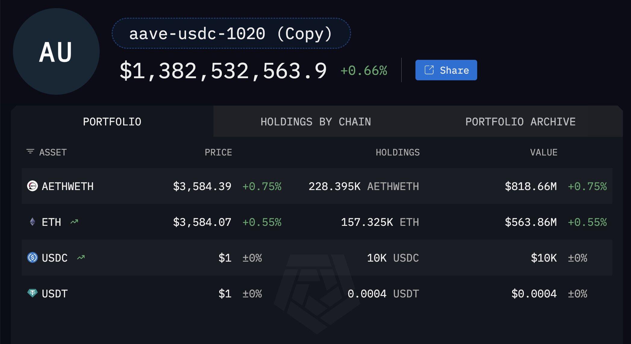 The entity holds 228.39K ETH in loaned positions worth about $818.6 million and 157.32K ETH in direct spot holdings worth $563.8 million, at the time of publication on Wednesday.