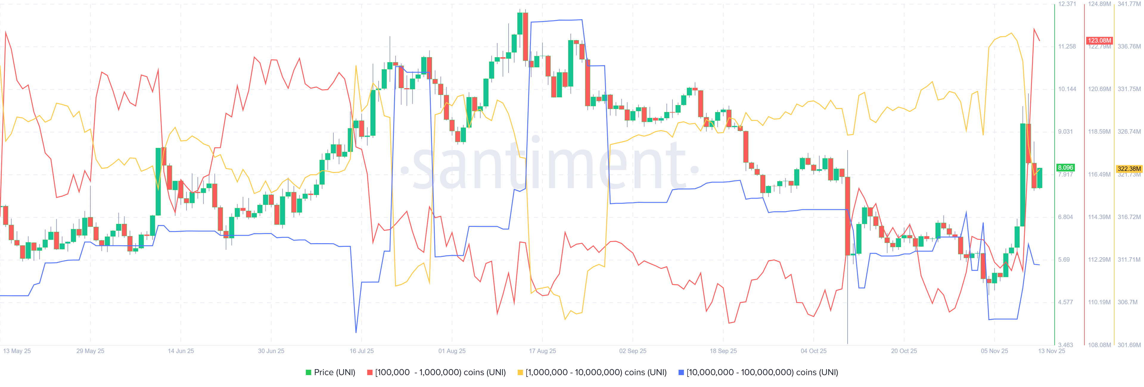 Uniswap (UNI) trades in green above $7.86 at the time of writing on Thursday, and appears to be stabilizing after a sharp 40% surge earlier in the week. The launch of the ‘UNIfication’ governance proposal by Uniswap Labs and the Uniswap Foundation on Monday has sparked optimism across the ecosystem, as traders position for continued upside amid growing whale activity and rising derivatives interest.