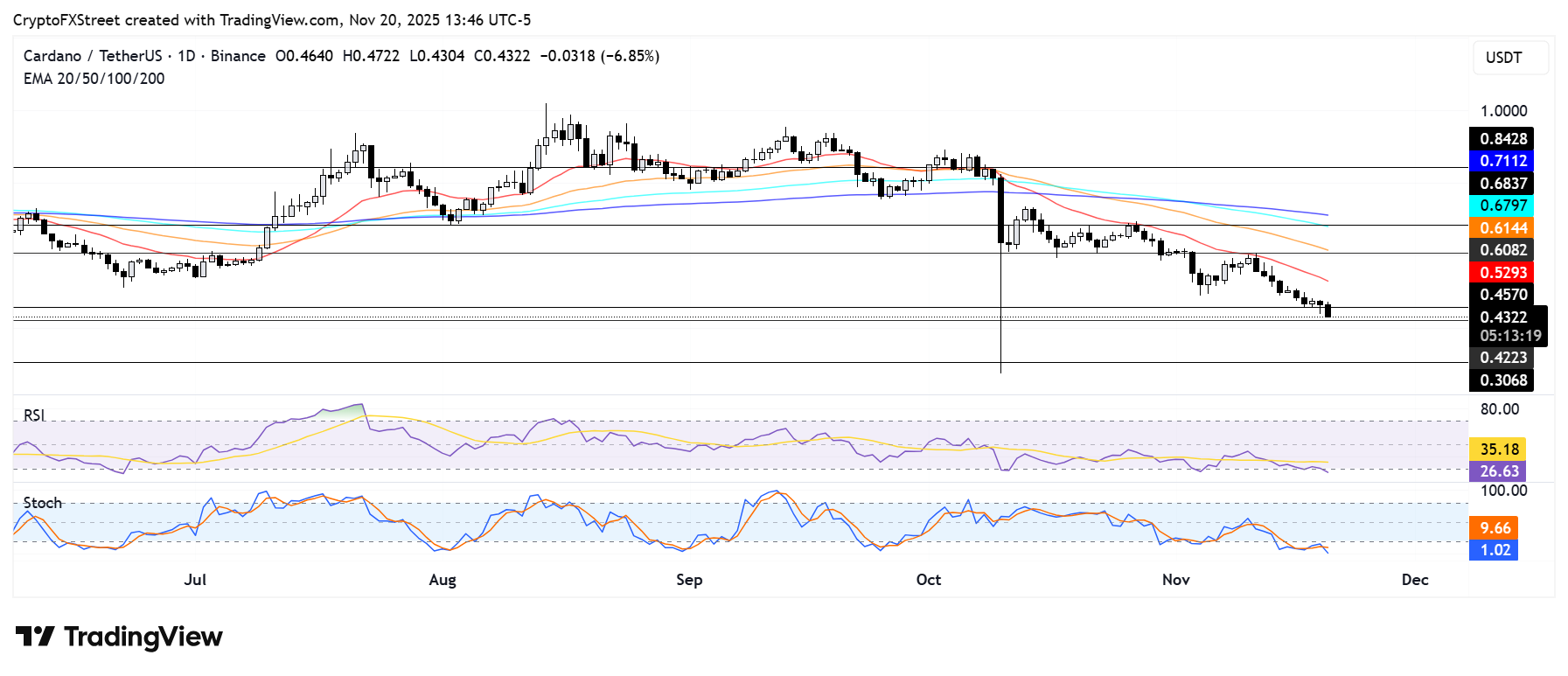 On the upside, ADA has to recover $0.45 and clear the 20-day Exponential Moving Average (EMA) resistance to retest the $0.60 psychological level.
