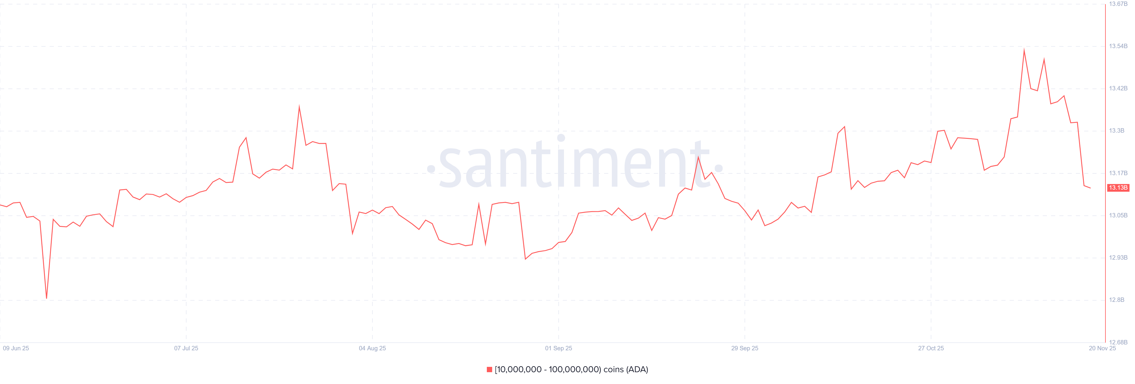Wallets holding 10M-100M tokens reduced their collective holdings by 370M ADA in the past seven days. This cohort had been buying the dip since mid-October, only to exhaust their momentum last week.