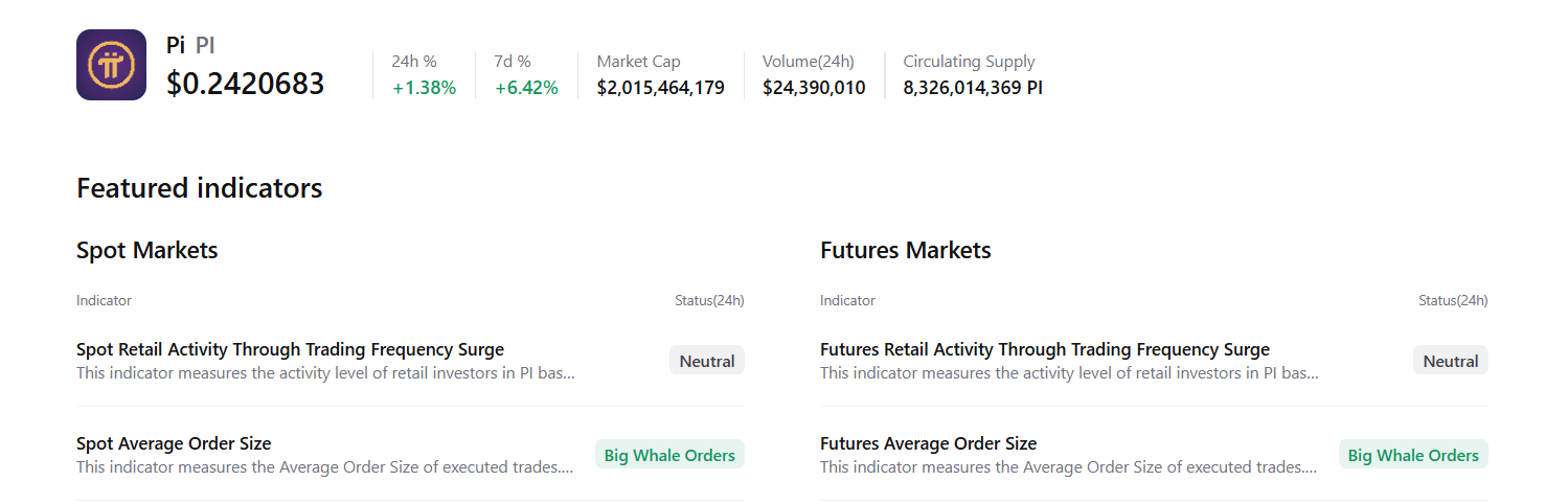 CryptoQuant summary data supports a positive outlook for Pi Network, as spot and futures markets show large whale orders, signaling that a rally may be forming.