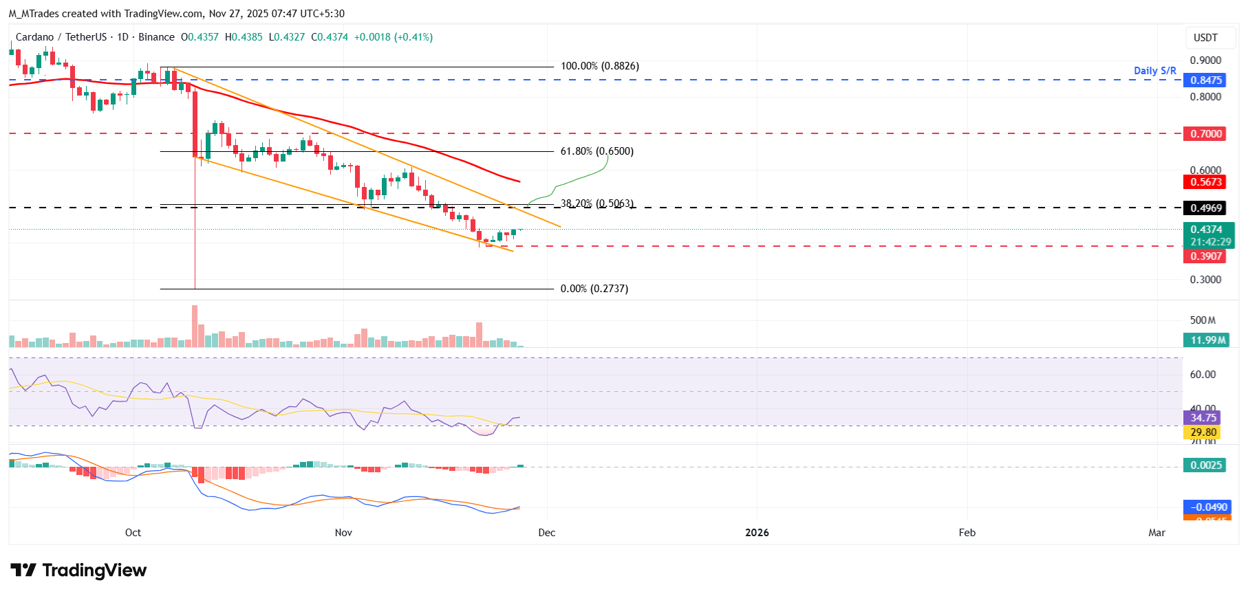 • The technical outlook suggests a further recovery, with ADA targeting $0.50.