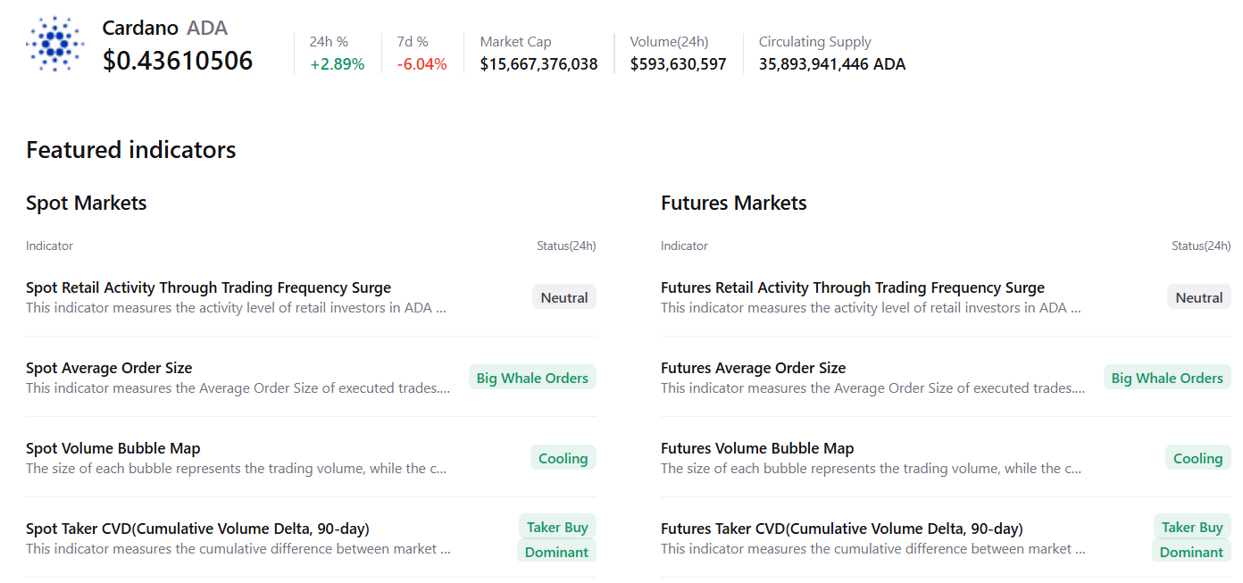 CryptoQuant’s summary data underpins the bullish outlook, as Cardano’s spot and futures markets show large whale orders, cooling conditions, and buy dominance. These factors signal a potential recovery in the upcoming days.