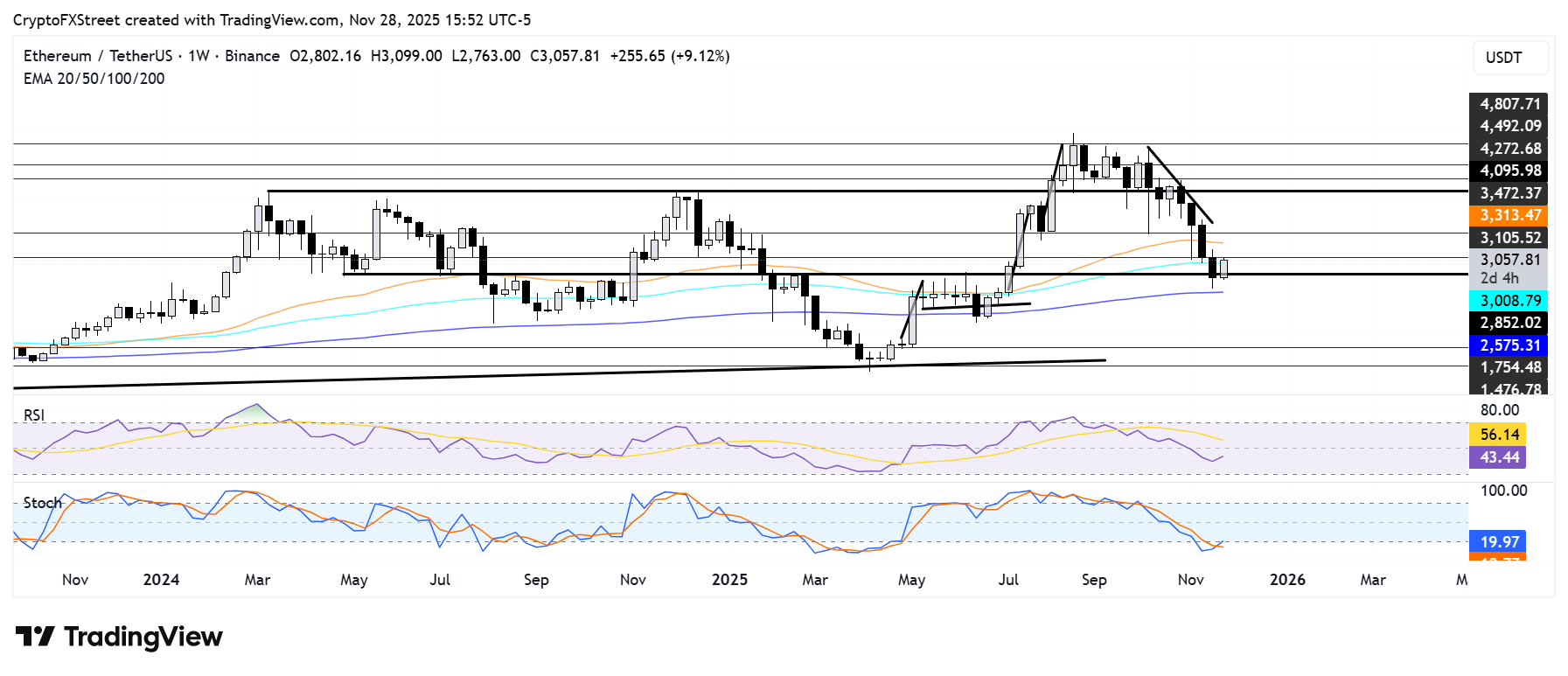 Ethereum price today: $3,050