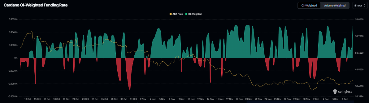 Apart from the holders accumulating, Coinglass’s OI-Weighted Funding Rate data shows that the number of traders betting that the price of ADA will slide further is lower than that anticipating a price increase.