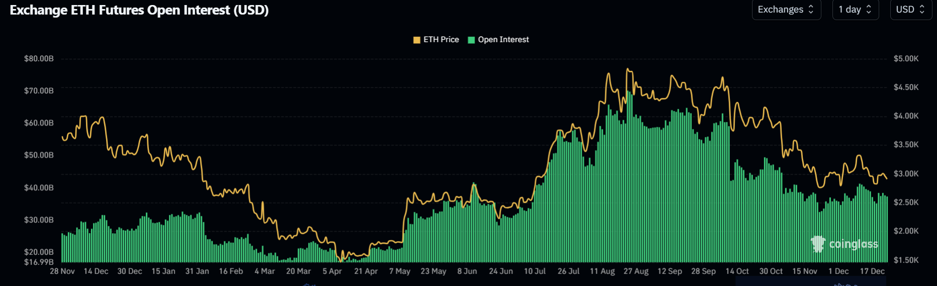 From $26.83 billion in January, Ethereum's OI surged more than 160% to $70.13 billion in August. However, it crashed by more than 53% to a low of $32.57 billion in November after the October 10 leverage flush. The figure has increased slightly to $37.37 billion in December.