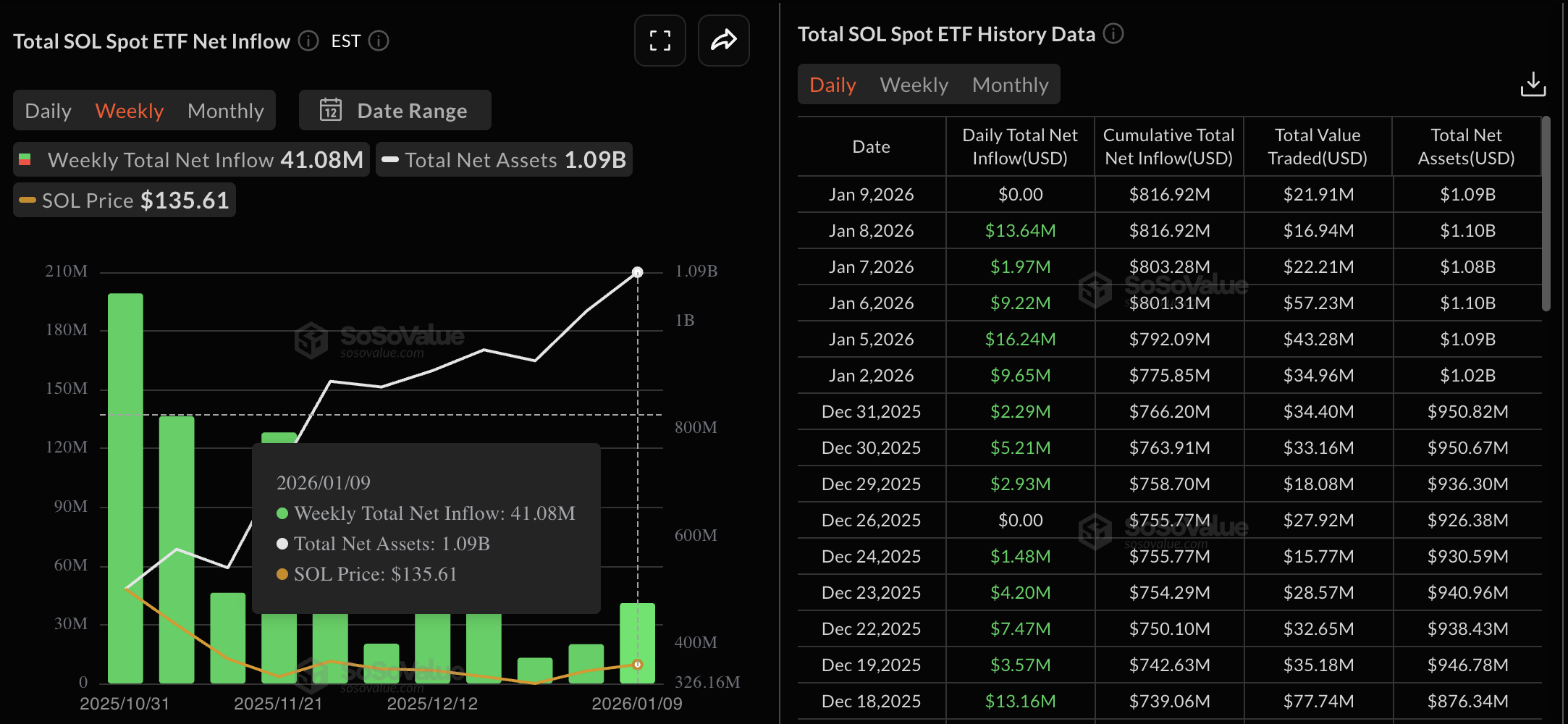 Solana ETFs data. Source: Sosovalue
